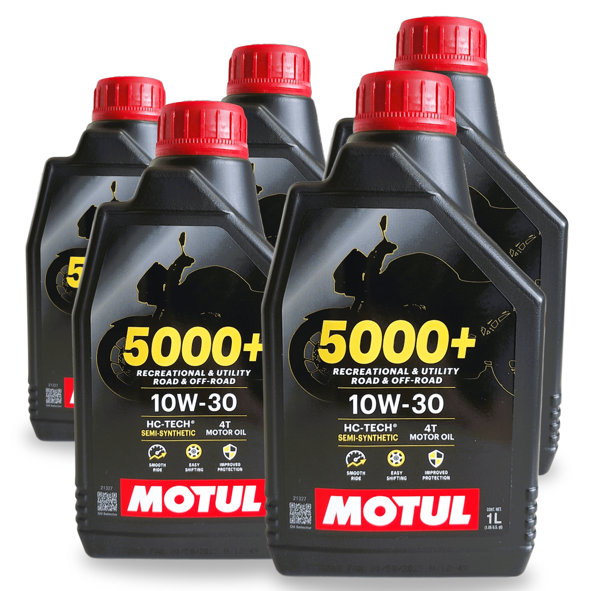 Inovação Motul para sua moto. O Motul 5000+ 4T 10W30 é semissintético com exclusiva Tecnologia HC-Tech® — desenvolvido com óleos básicos sintéticos hidrocraqueados combinados com minerais premium. Ideal para motos japonesas modernas que requerem baixa viscosidade com proteção superior.