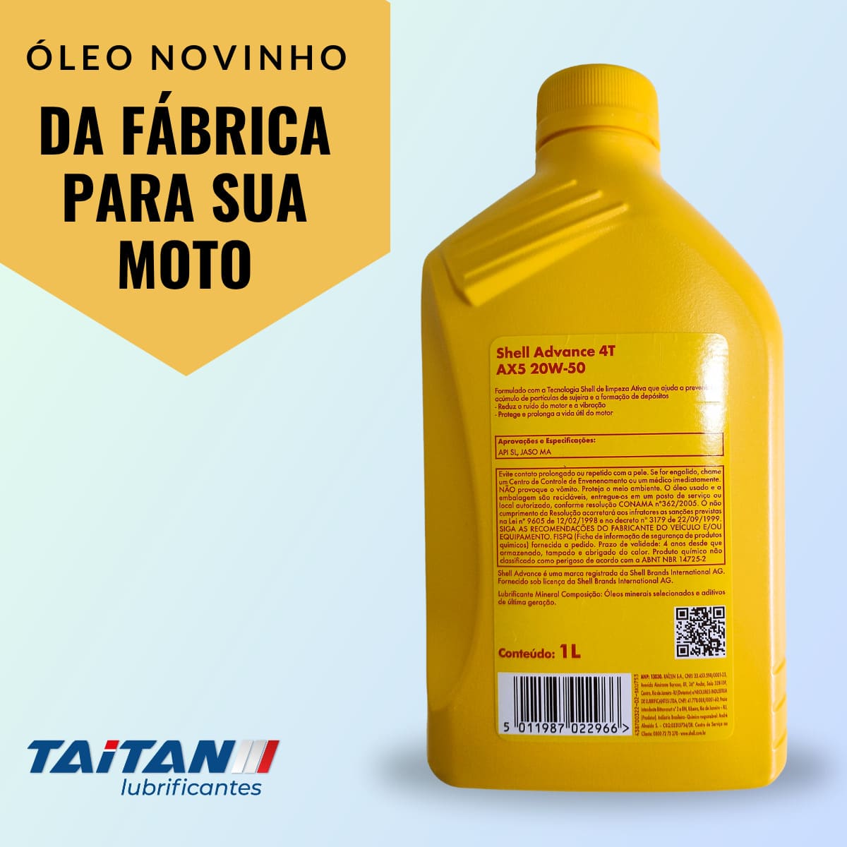 - Viscosidade: 20W50 — ideal para climas quentes